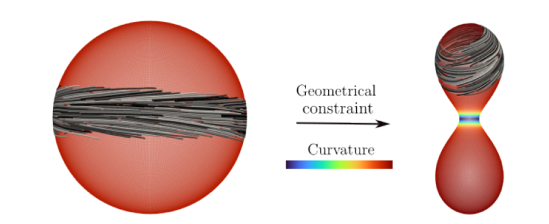 Interestingly, this picture changes significantly when we move from particles to extended objects such as active filaments. Active filaments have intrinsic curvature, so their energy-minimizing configurations generally do not align with geodesics, except in special cases such as spherical surfaces. On surfaces with non-uniform curvature, however, their motion emerges from a subtle interplay of activity, bending rigidity, density, and geometrical constraints. Whereas particles may become trapped by geodesic trajectories, including closed loops or long, recurrent paths, filaments instead localize in particular regions of the surface. These results show how curvature and topology can be harnessed to guide or constrain filament organization [2].